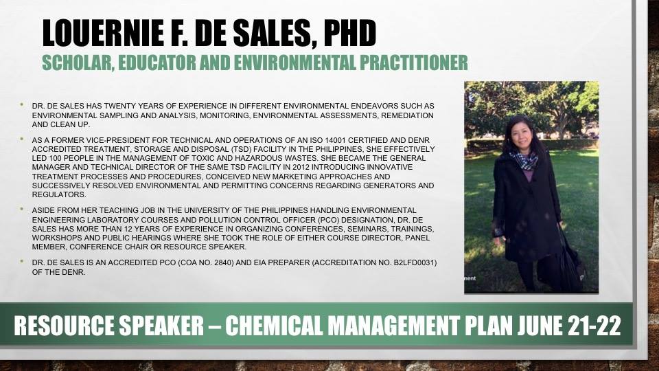 Meet our speakers for Chemical Management Plan Seminar-Workshop on June 21-22. Hurry! Registration is still open.