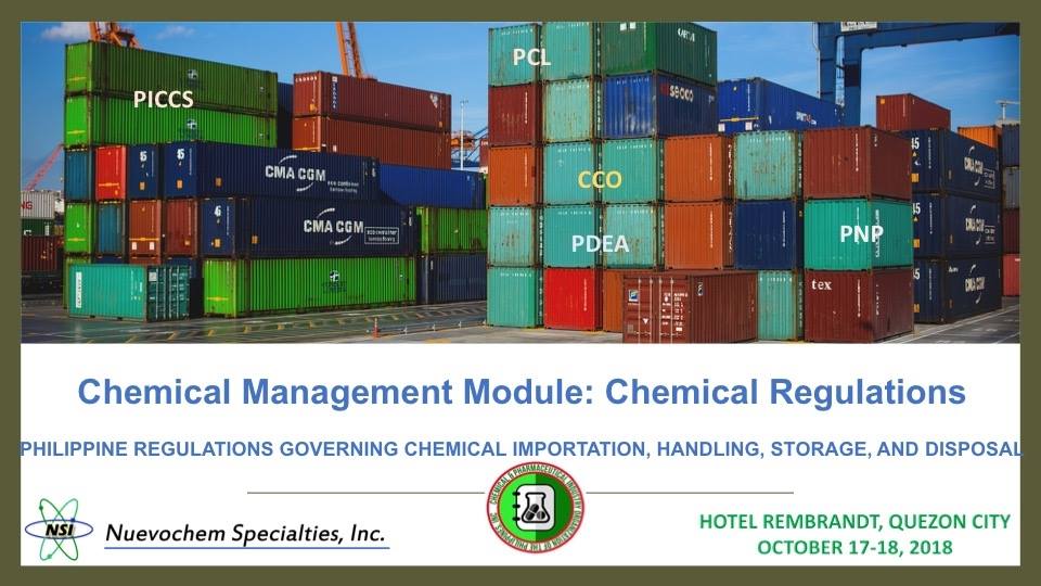 What are the required licenses, forms and permits in importing chemicals? CHEMICAL REGULATIONS SEMINAR-WORKSHOP. OCTOBER 17-18, 2018. Become updated on Chemical Regulations while earning your CPD units. 12 CPD Units for Chemists and Chemical Technicians, 9 CPD Units for Pharmacists, TBA for Chemical Engineers.