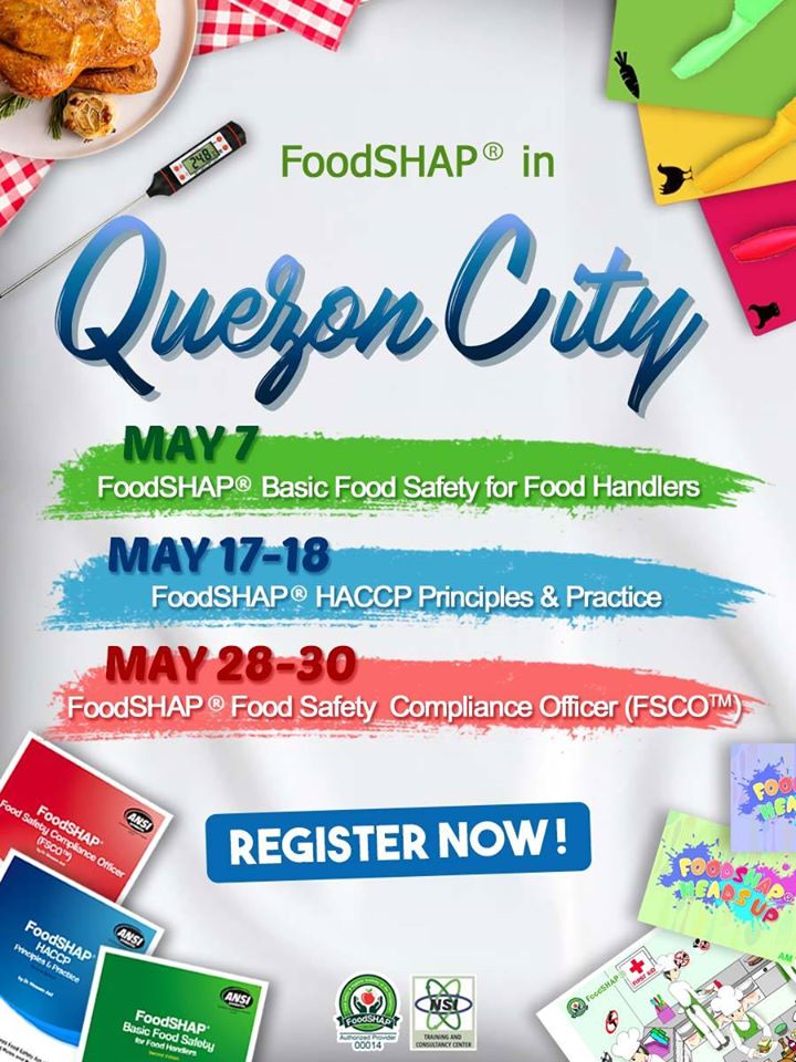 Become FoodSHAP® Certificate Holder || contact 0920-982-3680 (Frances Matatquin) 0977-805-0088 (Eunice Bartolome) || FoodSHAP® Certificate Program of the Food Safety Training and Examination System (FSTES™) || Internationally accredited by the American National Standards Institute (ANSI) and locally recognized by the Philippines Department of Health (DOH) #NSI #FoodSHAP #FoodSafety #HACCP #FSCO