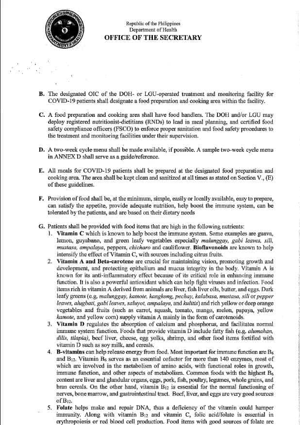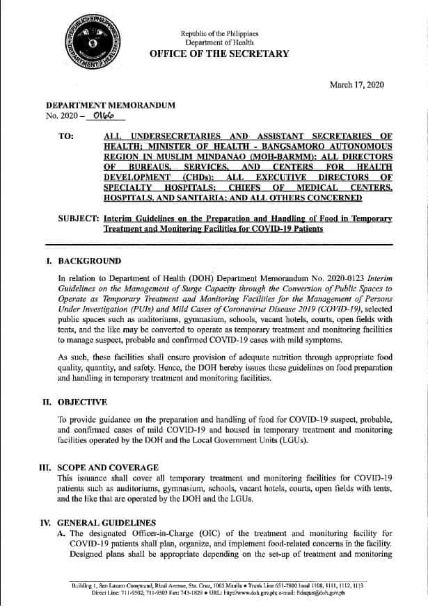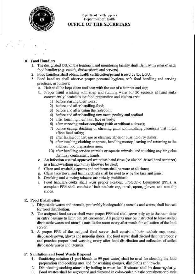 DOH Guideline on the role of FSCOs in securing safety of food for covid-19 patients under Memorandum No. 2020-0166.
