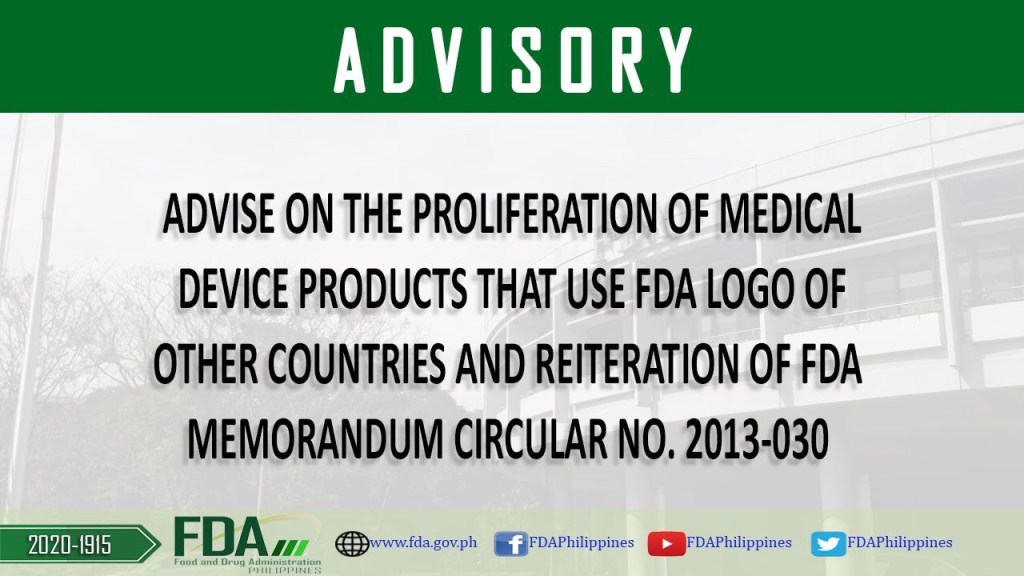 The Philippine Food and Drug Administration (FDA) has observed the rampant use of FDA logo of other countries specifically the United States (U.S.) FDA logo in promotional, advertisement, marketing materials, and labels of selected medical device products such as face masks.