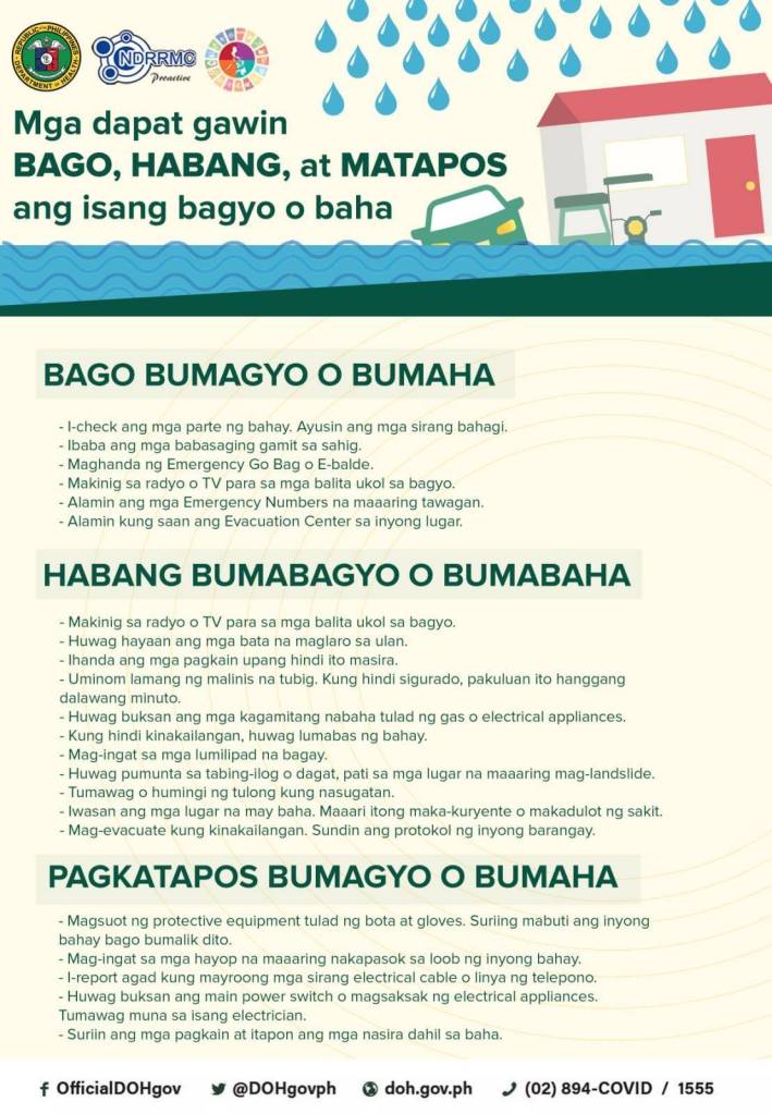 Panahon na naman ng tag-ulan! Bilang paghahanda sa maaaring pagtama ng bagyo ngayong buwan, siguraduhing handa ang inyong pamilya. Huwag mangamba kahit may bagyo man o pandemya. Alamin dito ang mga dapat gawin bago, habang, at pagkatapos ng isang bagyo o baha!![]()