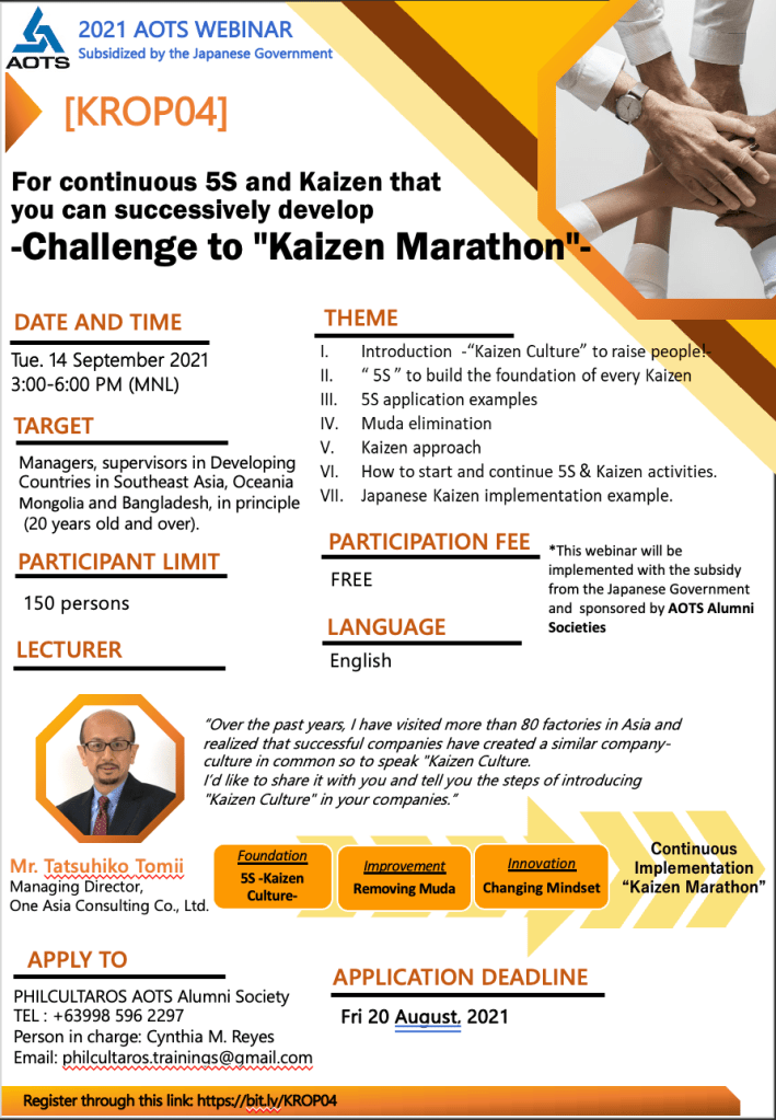 For continuous 5S and Kaizen that you can successively develop -Challenge to “Kaizen Marathon”-Date and Time