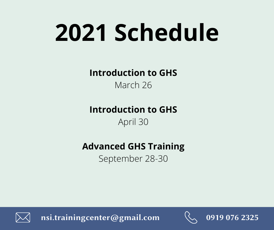 Please see updated schedule for 2021.In light of the recent ECQ implementation, we decided to move the schedule of advanced GHS training from August 11-13 to September 28-30,2021