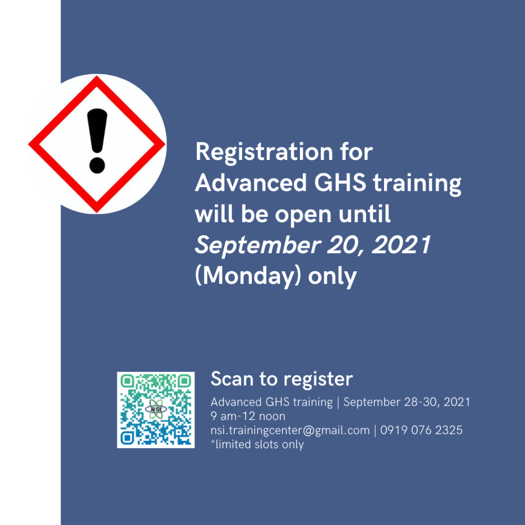 Registration for advanced GHS training will be open until September 20, 2021 only.