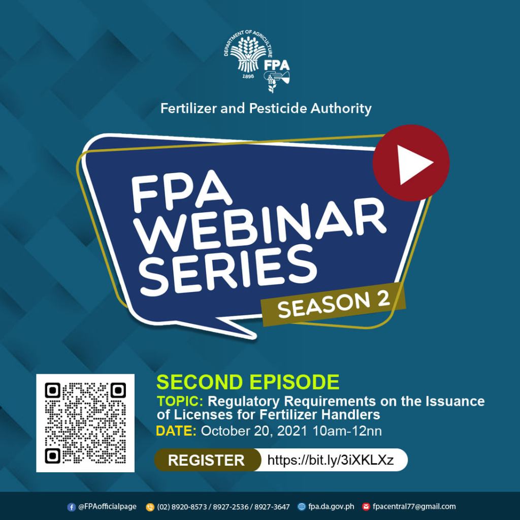 Sa pangalawang episode ng FPA Webinar Series, ating tatalakayin ang proseso at requirements sa pagkuha ng License to Operate (LTO) bilang Manufacturer, Processor, Formulator, Bulk Blender, Bulk Handler, Importer, Importer End-User, Institutional User, Indentor, Exporter, Repacker, Area Distributor, and National Distributor.