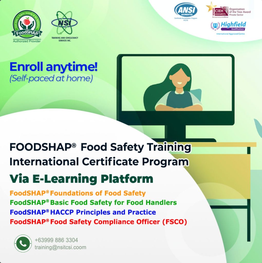 You can enroll anytime in the FOODSHAP Food Safety Training International Certificate Program via E-Learning Platform.