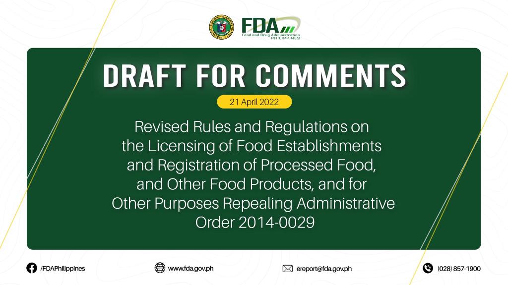 ***Draft for Comments || Revised Rules and Regulations on the Licensing of Food Establishments and Registration of Processed Food, and Other Food Products, and for Other Purposes Repealing Administrative Order 2014-0029***