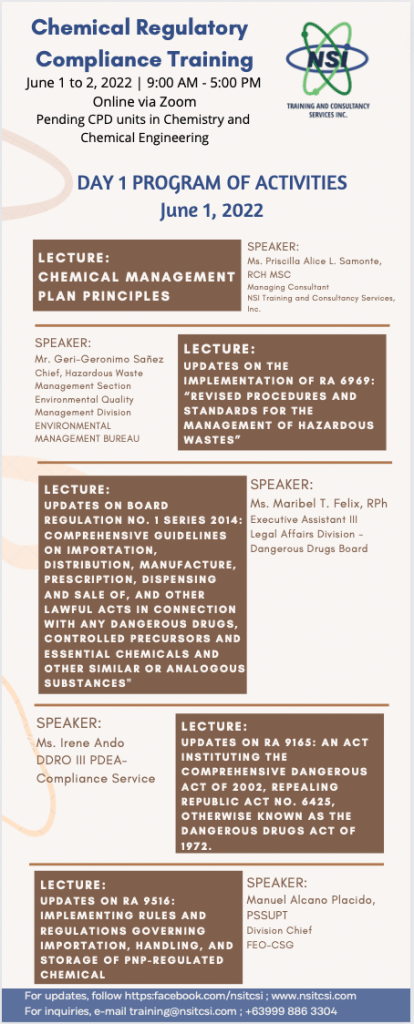 We are presenting to everyone the speakers for the respective lectures on the Chemical Regulatory Compliance Training 2022.