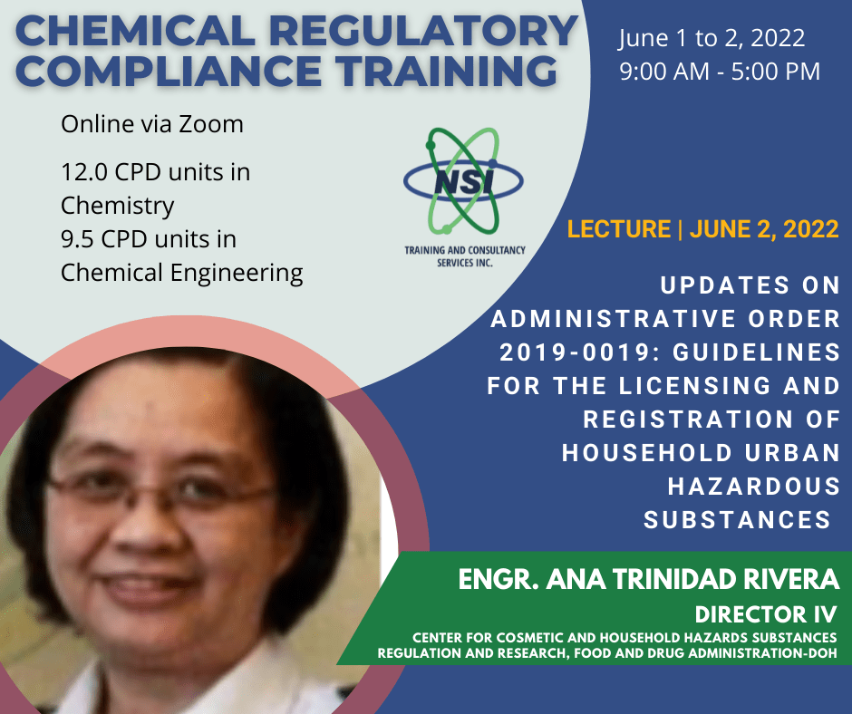 To talk about the Updates on Administrative Order 2019-0019: Guidelines for the Licensing and Registration of Household Urban Hazardous Substances, we have