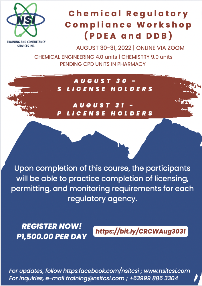 [WORKSHOP] Chemical Regulatory Compliance Workshop (DDB and PDEA) 2022