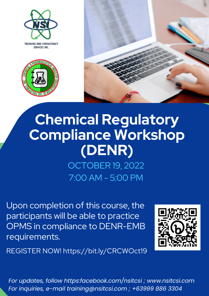 We are inviting everyone to the next leg of the Chemical Regulatory Compliance Workshop. This time we will go through the OPMS in compliance with DENR-EMB requirements.