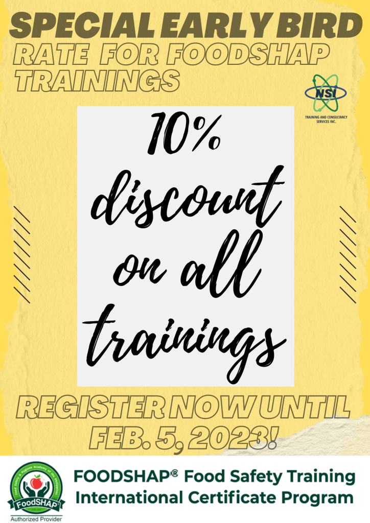 As promised, we are offering a special early bird rate for our FoodSHAP trainings.