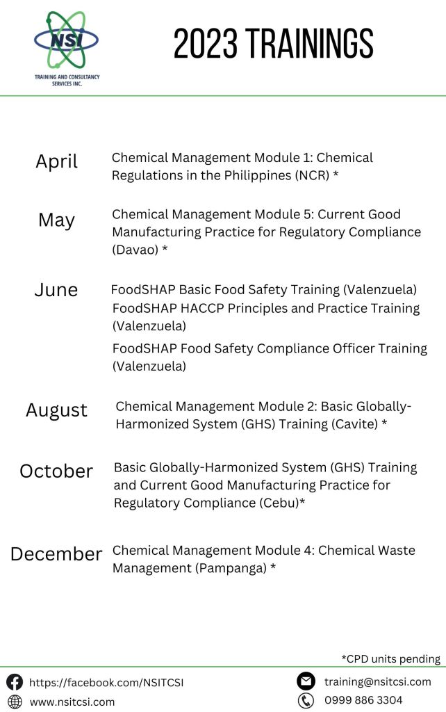 Registration for the Chemical Management Module 1: Chemical Regulations in the Philippines is still ongoing. We look forward to your participation.