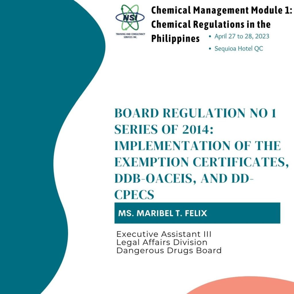 Chemical Management Module 1: Chemical Regulations in the Philippines | April 27-28, 2023 | Sequoia Hotel Quezon City