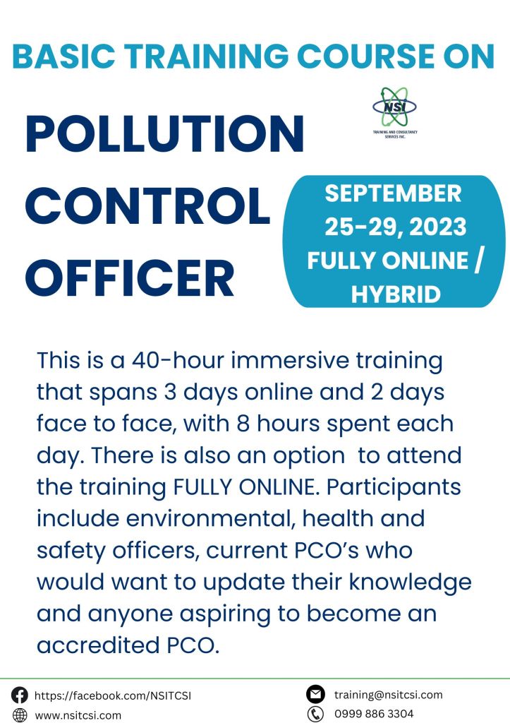 The Basic Training on Pollution Control Officer (PCO) is a 40-hour immersive training that spans 3 days online and 2 days face to face, with 8 hours spent each day. There is also an option to attend the training FULLY ONLINE. Participants include environmental, health and safety officers, current PCO’s who would want to update their knowledge and anyone aspiring to become an accredited PCO.