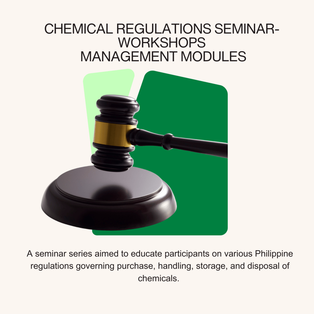Moreover, we assist companies with their operational and regulatory concerns such as Globally Harmonized System (GHS) System compliant Product Labels and Safety Data Sheets and Regulatory Permitting of various products among different Philippine Government Agencies.